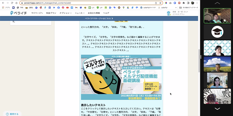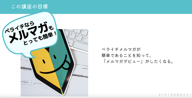 今回参加したセミナーは、最近バージョンアップしたペライチの「メルマガ機能基礎講座」