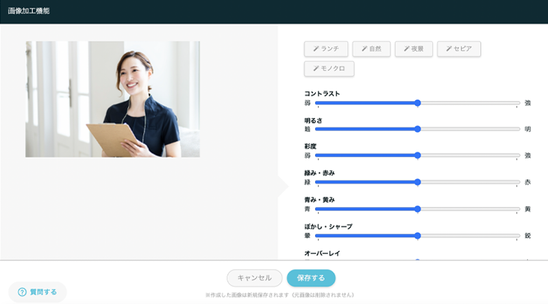 ペライチでは画像選択画面で「トリミング」や「画像加工」を簡単にすることができます。