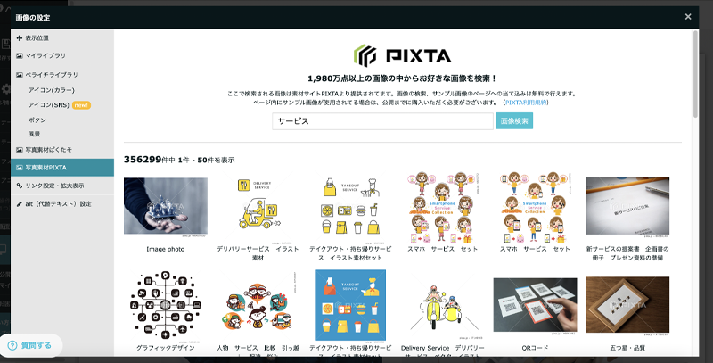 ホームページ作成サービス「ペライチ」なら、PIXTAが連携されているので、簡単&低コストで利用することができますよ^^