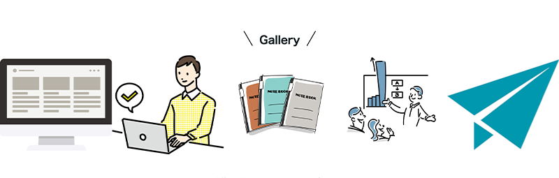 → オフィスの風景写真や働く人のイメージ写真を使う
