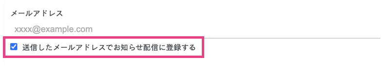 この項目を入れると、自動でメルマガ購読の有無を選択できるチェックボックスが現れます。