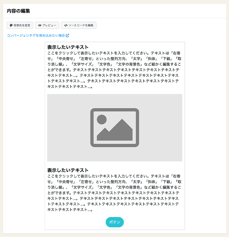 テキストや画像、ボタンの設定を行います。