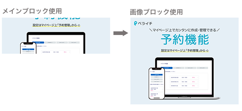 シンプルに画像や動画を入れることはもちろん、工夫次第ではメイン画像や区切り線としても使うことができ、ホームページの出来をワンランクアップさせてくれるブロックです。