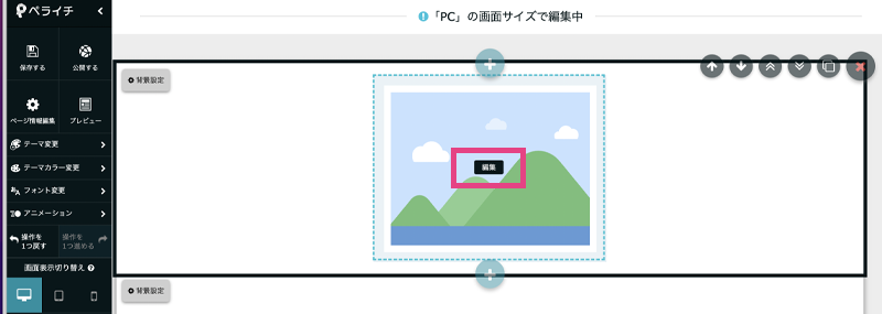 編集画面で画像部分にカーソルを合わせると「編集」という文字が出てくるのでそのままクリック。画像設定画面が出てくるのでマイライブラリなどから好きな画像を選びましょう。