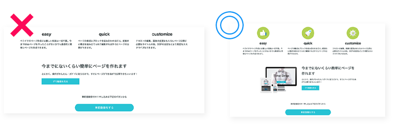 商品画像のような明確に必要という場合以外でも、イメージ画像やイラスト、アイコンなどを取り入れるようにしてみるとぐっと見栄えや見やすさがレベルアップします。