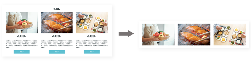 テキストエリアとボタン要素を全て削除することで、隙間のある画像のみのブロックとして使うことができます。