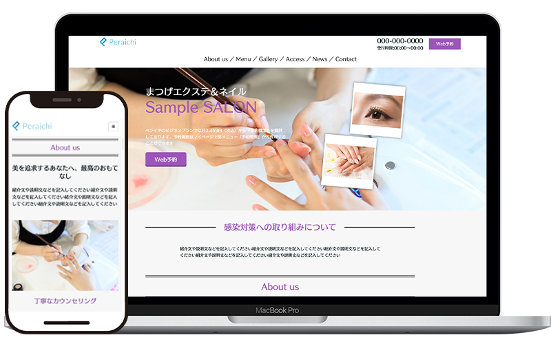 サロンの集客や情報発信のためのサイトにピッタリのテンプレートです。