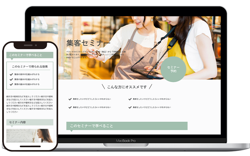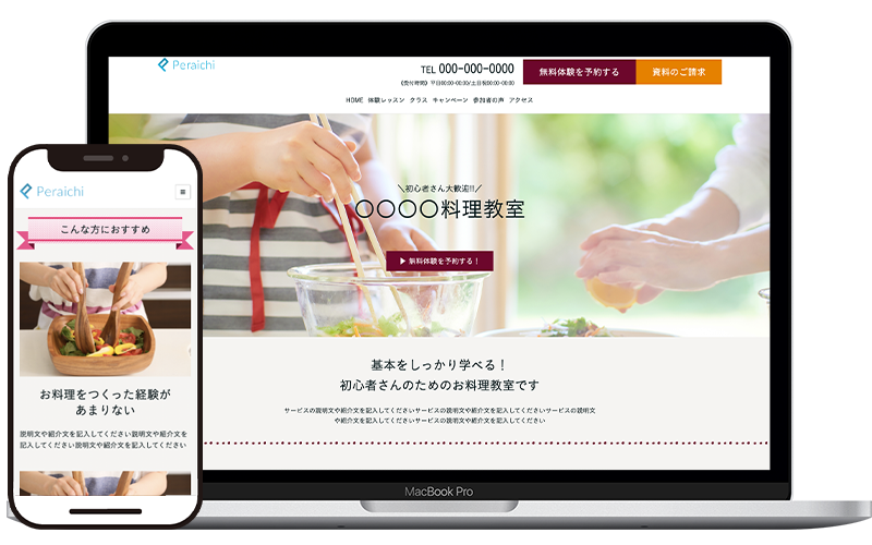 個人で教室を開いた場合など、集客のできるサイトを作りたい時に人気のテンプレートです。予約機能や決済機能も使うことができます。