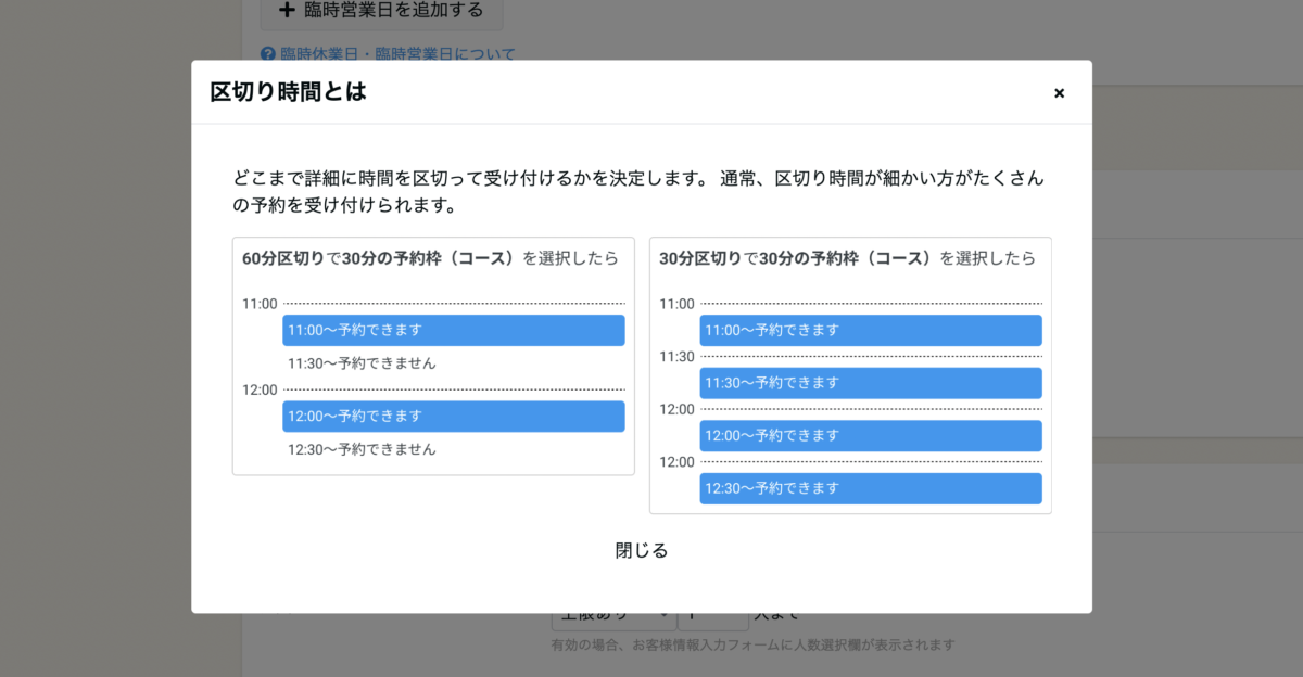 予約の「区切り時間」の設定について、図解つきのモーダルを追加しました。
