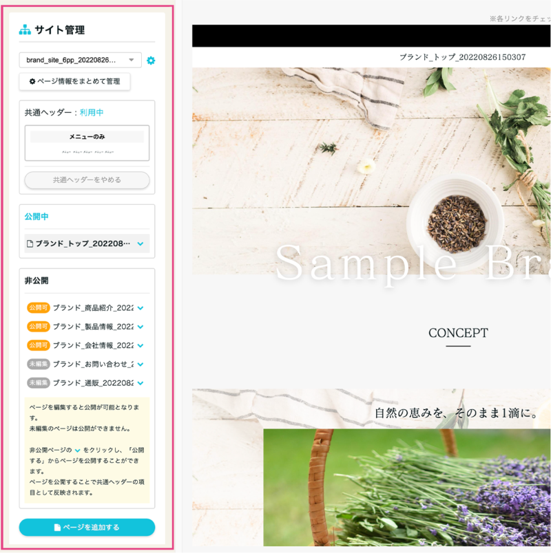 ページの編集・公開状況が管理画面上で確認できるようになりました!
