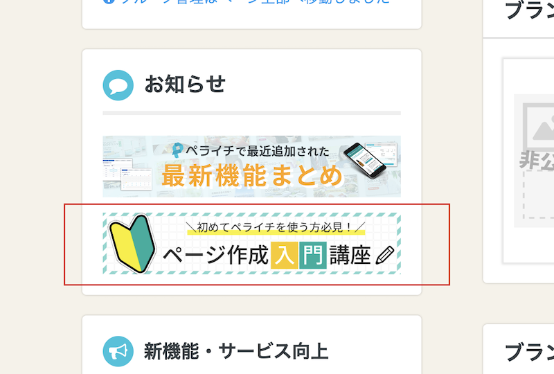 マイページに、初めてペライチを使うユーザー様向けセミナーの案内を掲載しました!