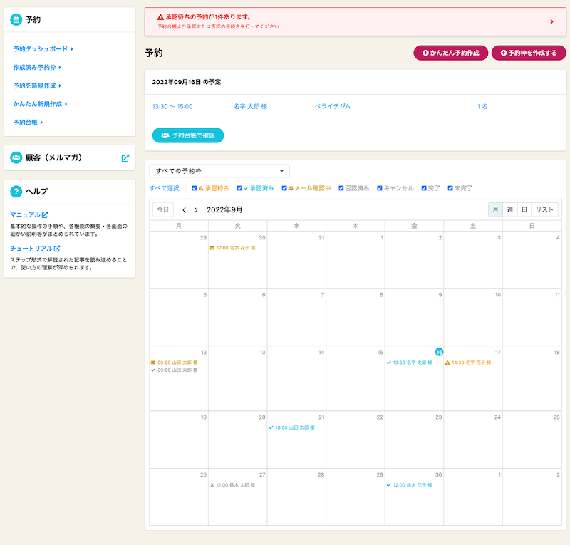 予約機能のトップページ(予約ダッシュボード)に予約日・予約者・ステータスが一覧でわかるカレンダーが登場!
