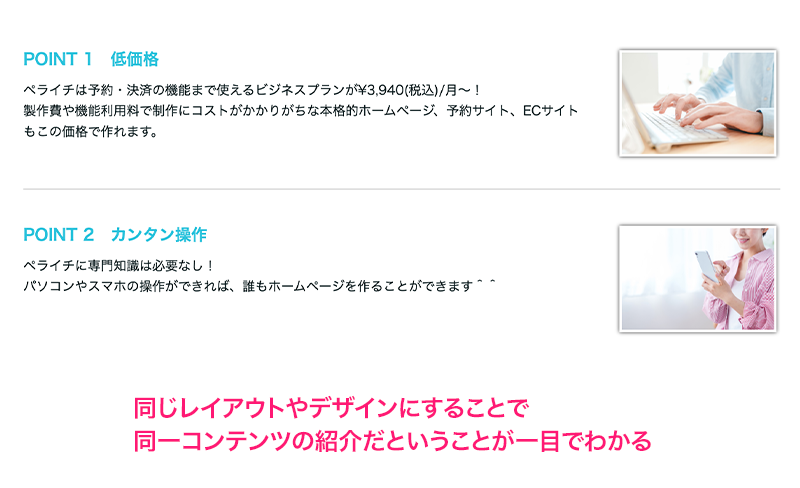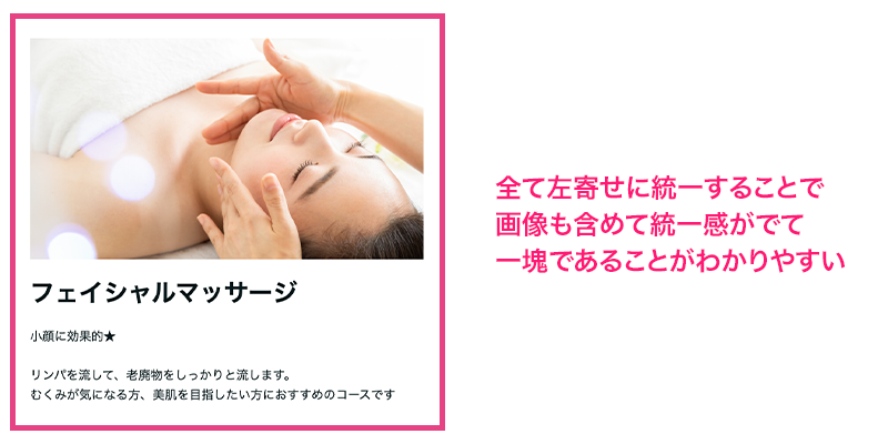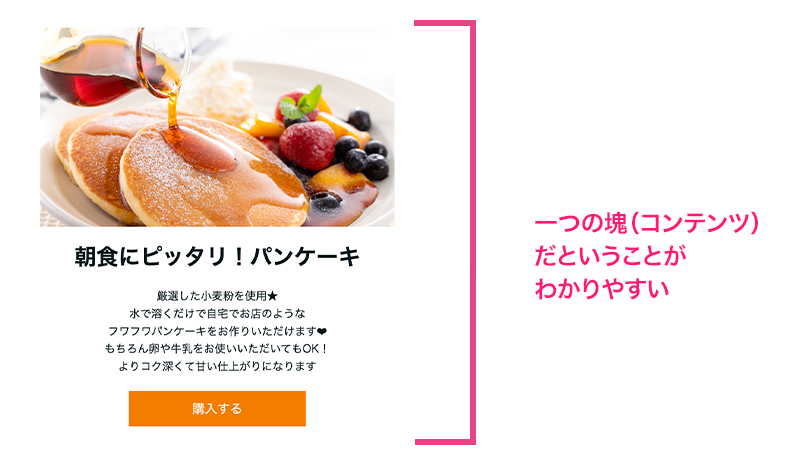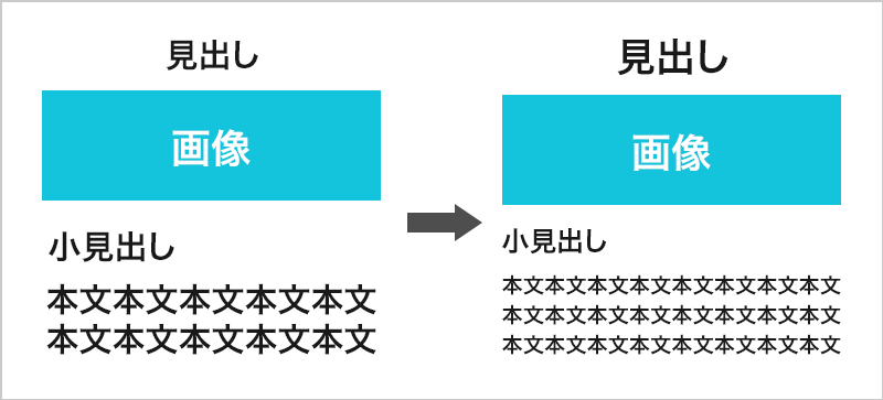 サイトには、見出し、本文、画像などさまざまな要素が取り入れられていますが、1つ1つをなんとなく並べるのではなく、グループ化して並べるようにしましょう。