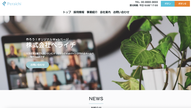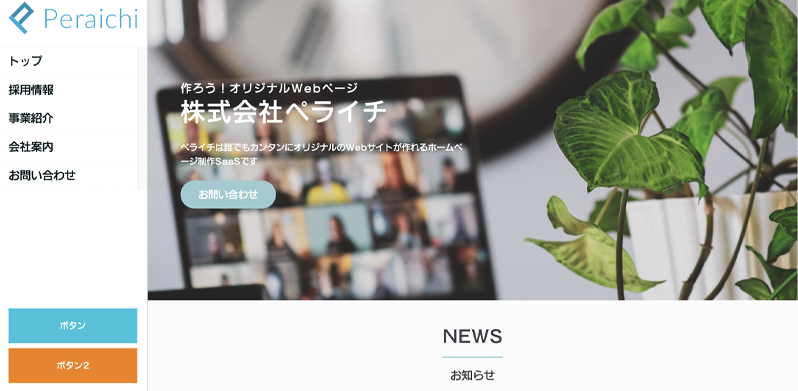 ホームページ作成「ペライチ」では、プロのデザイナーが作ったサイトパーツやテンプレートが使えるので知識いらずでおしゃれなサイトが作れます。