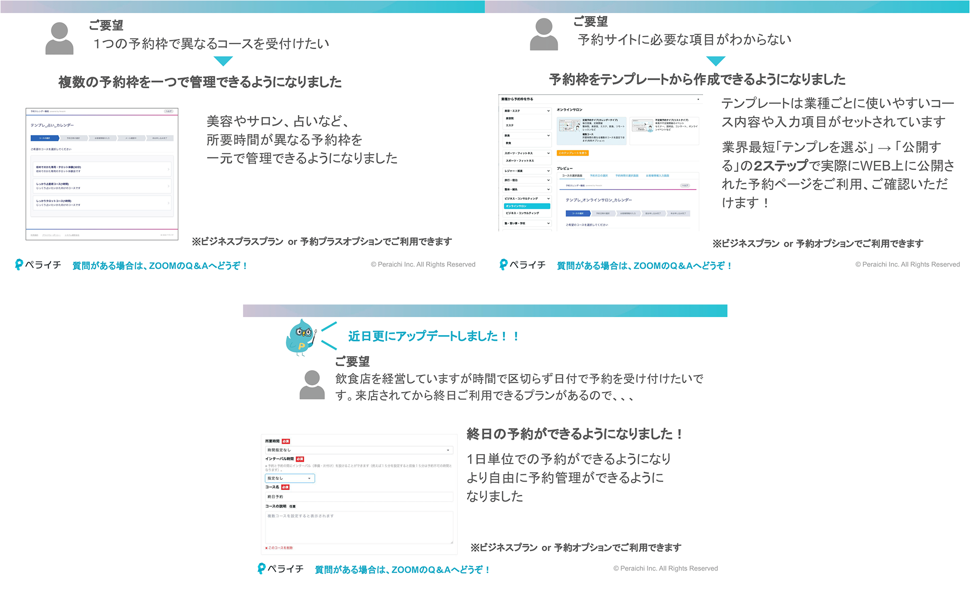 予約機能からは3つのアップデートをご紹介。