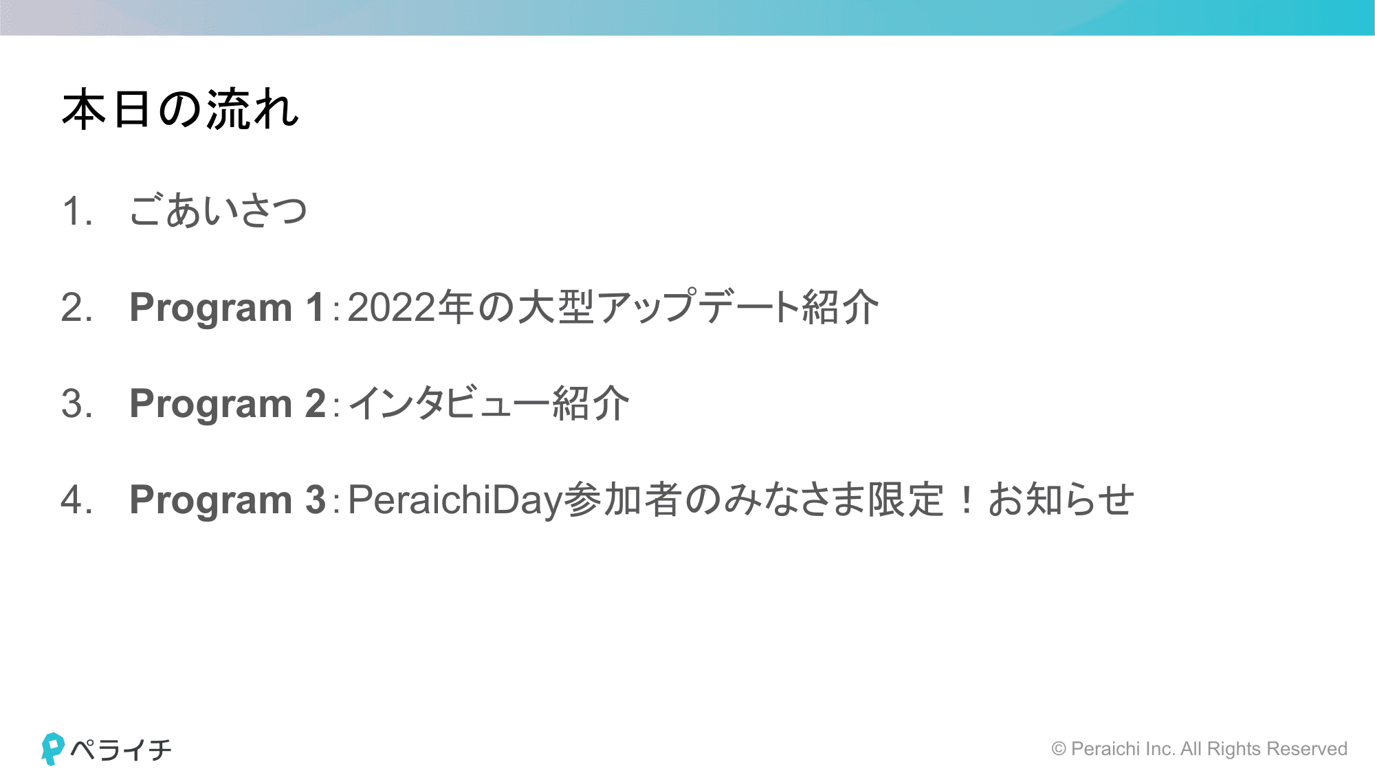 新発表も!Program 3:PeraichiDay参加者のみなさま限定のお知らせ