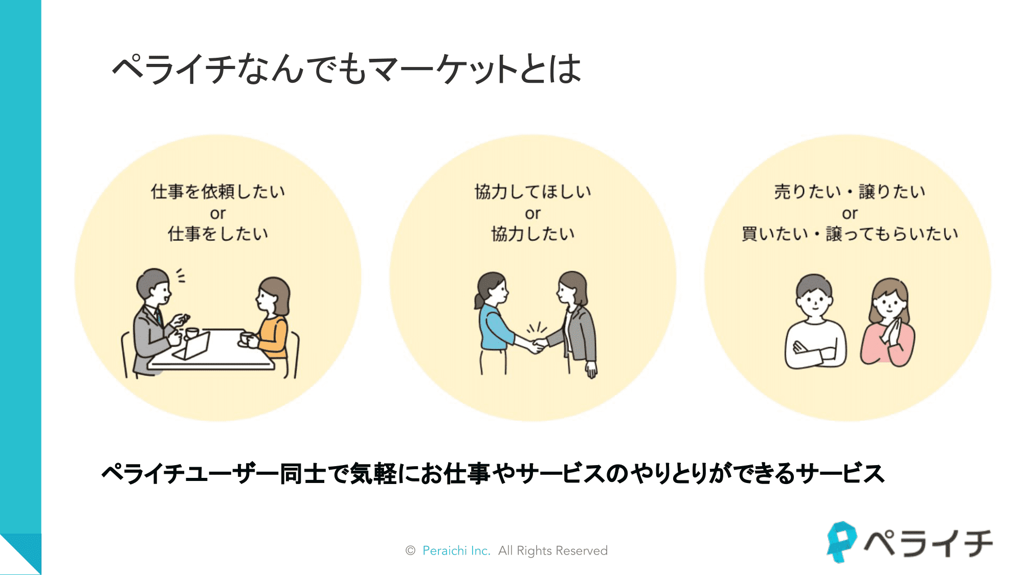 「ペライチなんでもマーケット」とは、ペライチユーザー同士で気軽にお仕事やサービスのやりとりができる新サービスです。