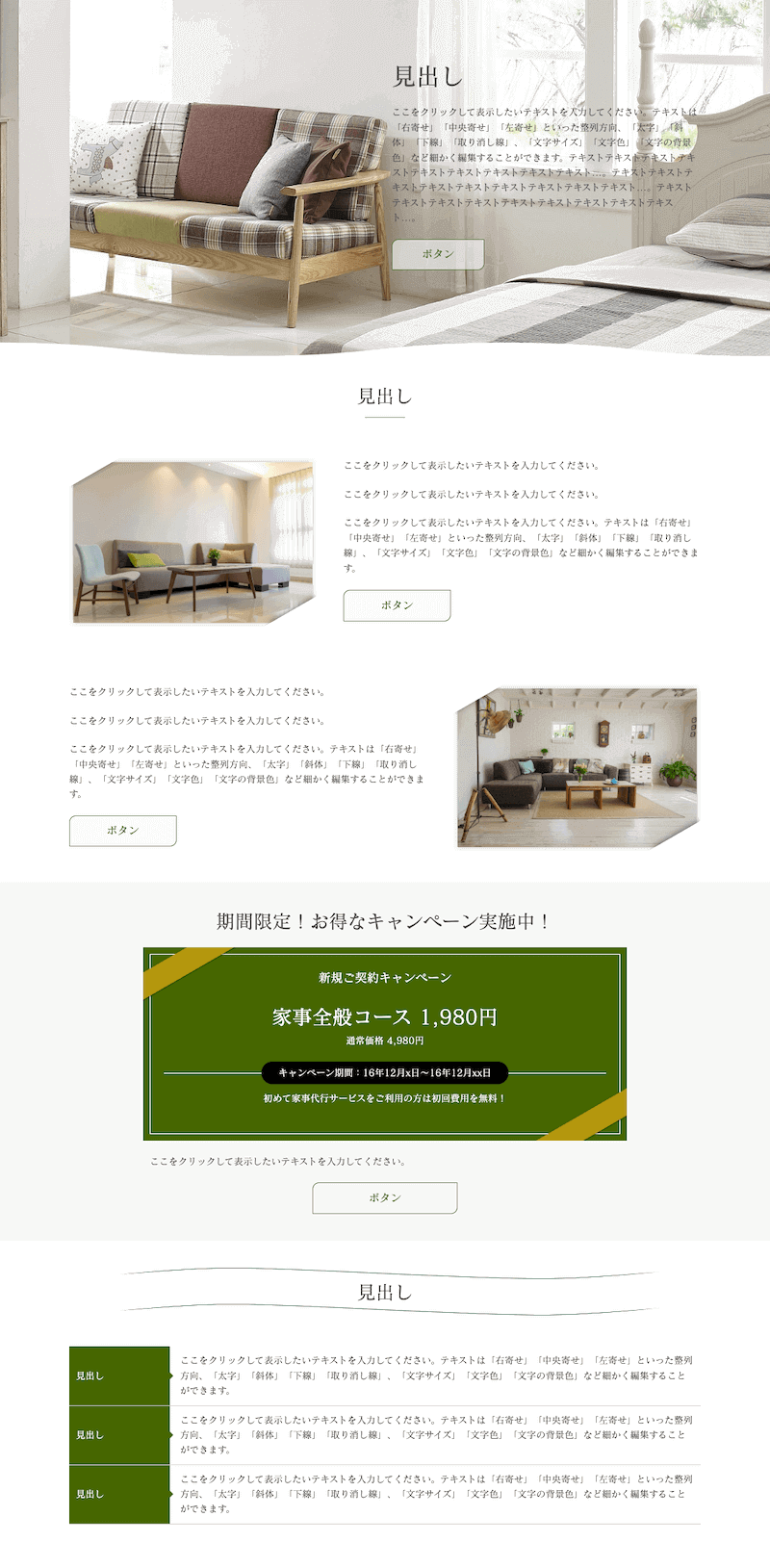 自然テーマでは、コーポレートページやナチュラルな雰囲気のページを作成できます♪