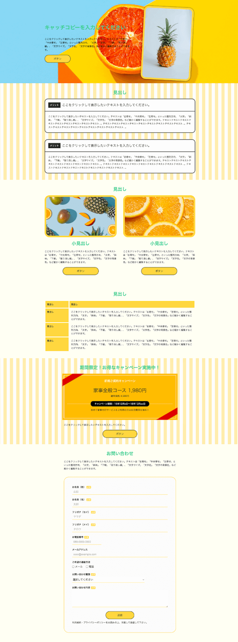 キャンペーンページやポップな雰囲気のページを作成できます♪