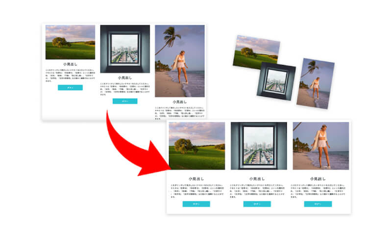 比率の異なる画像を横並びで表示しても、簡単に揃えられるようになりました♪