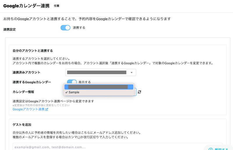 予約機能でGoogleカレンダーと連携した時に、連携するカレンダーを自分で選べるようになりました!