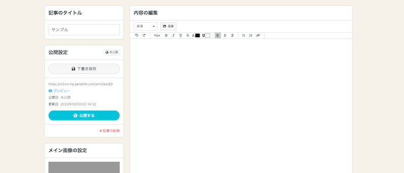ブログや記事ページなどのコンテンツをペライチで作れる機能です。