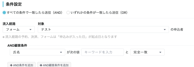 顧客情報を条件に追加することが可能なので、複雑な条件を元に、自動送信メールを送る事ができます。