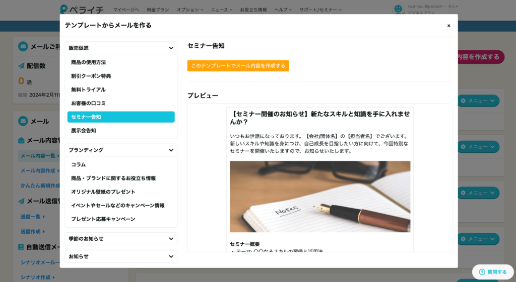 事前に用意されたテンプレートからかんたんにメールマガジンを作成できます。