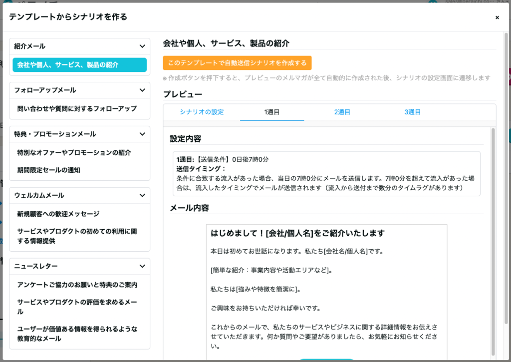 複数のステップでメールが送れるシナリオメールも、テンプレートから作成ができるようになりました。