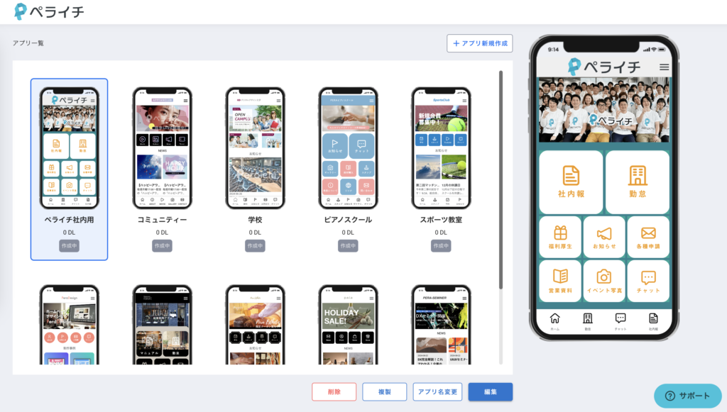 これまでペライチアカウント1つにつきアプリは1つしか作ることができませんでしたが、以前から数多くの要望として上がっていた、複数アプリの作成ができるようになりました。