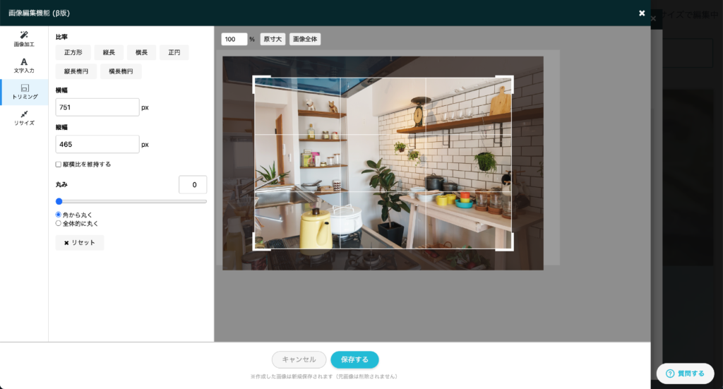 新たに追加されたトリミング機能により、画像の不要な部分を簡単にカットでき、ページデザインに合わせた画像編集が手軽に行えます。