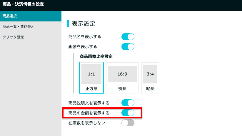 商品一覧 (決済) ブロック内の商品価格を表示・非表示選択ができるようになりました。