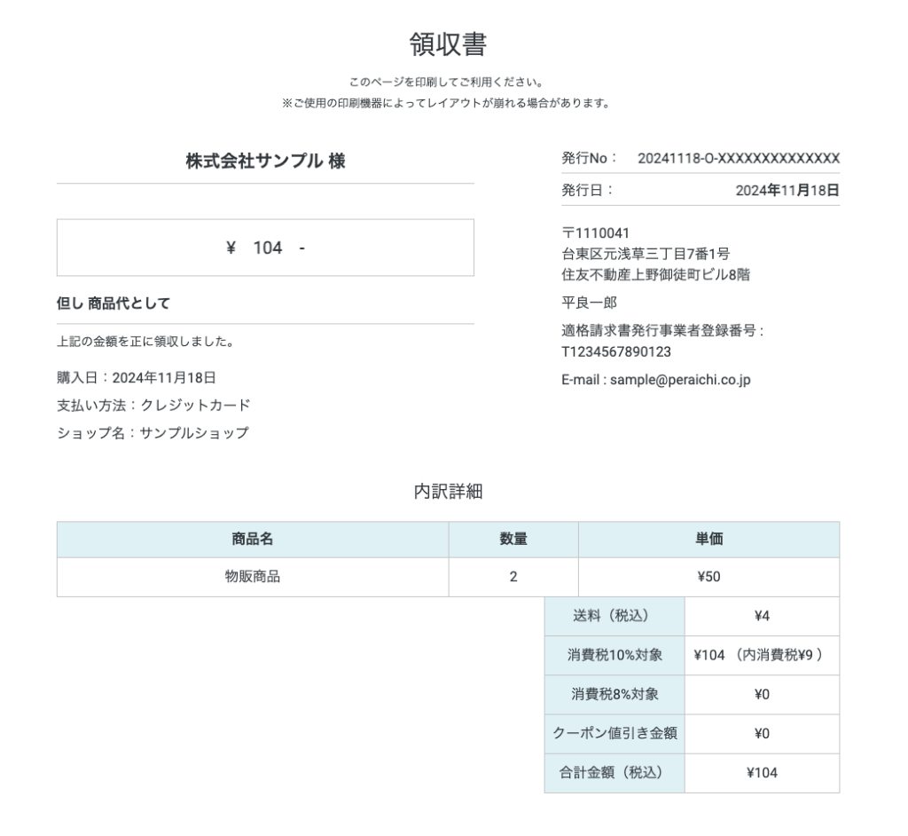 ※適格請求書番号はショップオーナーが設定されていないと記載されていません。