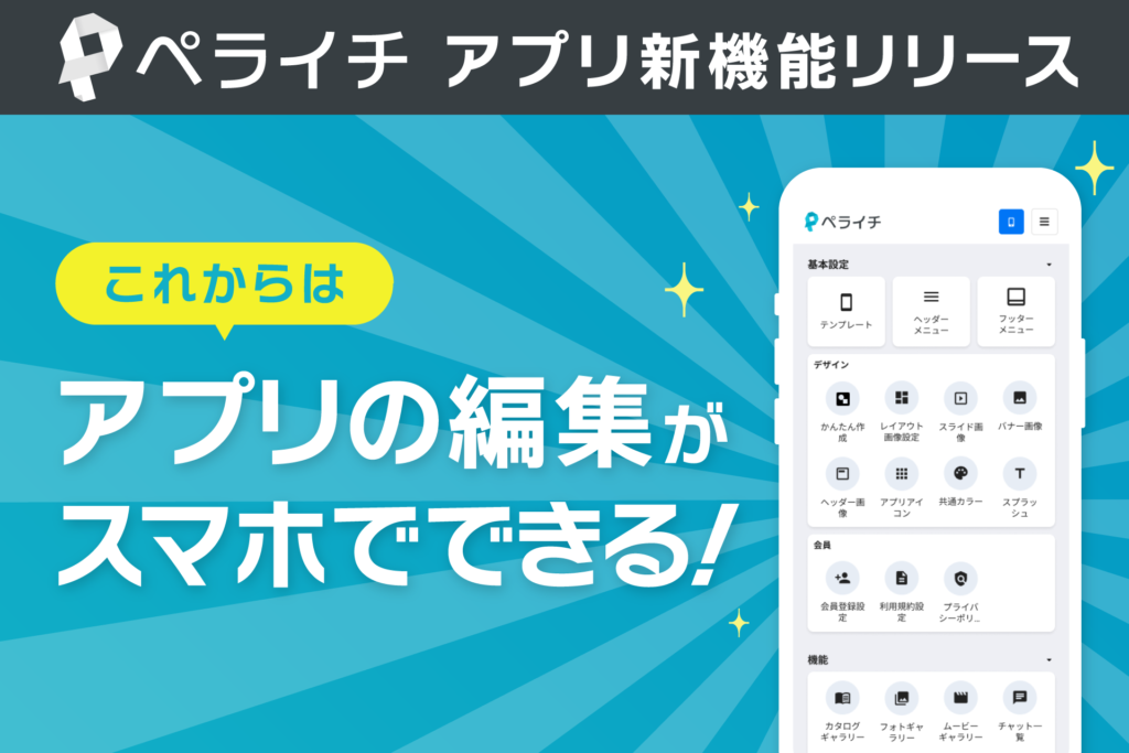 ノーコードアプリ作成ツール『ペライチアプリ』の作成や編集、運用がスマホひとつでできるようになりました。