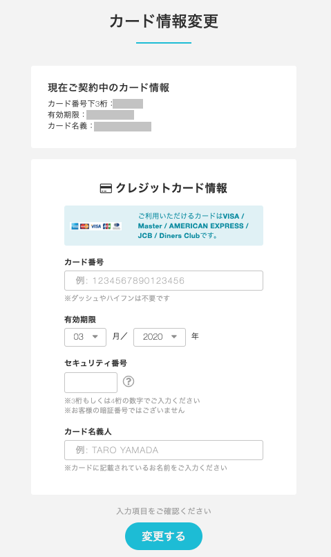 ※プラン課金時のクレジットカード登録・変更の場合は下記にご注意ください。