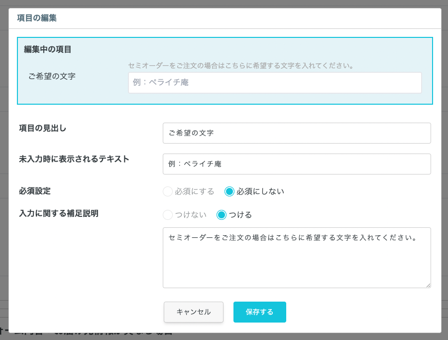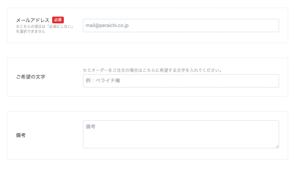 決済フォームとは、商品購入画面にて、氏名、住所、連絡先の記入項目以外にご購入者様に聞きたい項目を追加設定できる機能です。