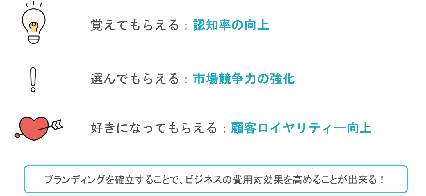 ブランディングで市場競争力の強化を見込めるため、同じサービスのなかでも自社サービスを選んでもらうきっかけになります。