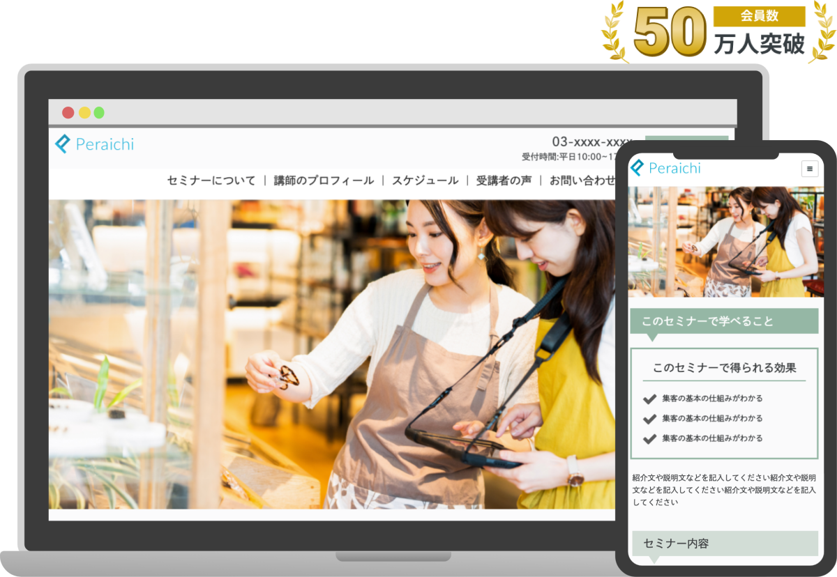 「ペライチ」ではHTMLやcssなどの専門知識がなくても、直感的な操作で自由度の高いページを作成できます。