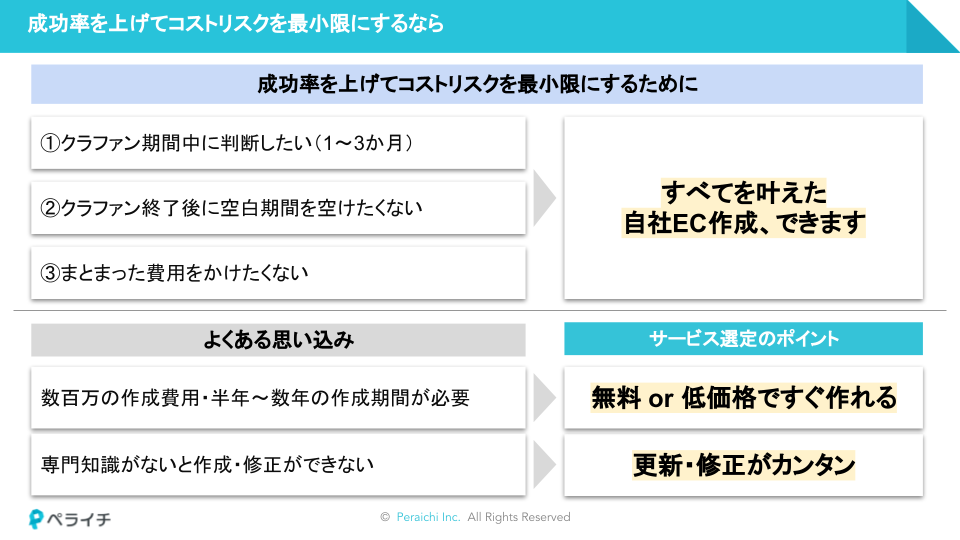 プロジェクトの成功率を上げてコストリスクを最小限にするための自社EC構築。