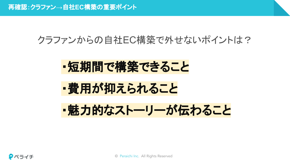クラウドファンディングで得た共感が冷めないうちにビジネスを成功させるためには、注文を受け付けるためのECサイトを短期間で構築し、魅力的なストーリーを熱量をもって伝えることが肝となります。