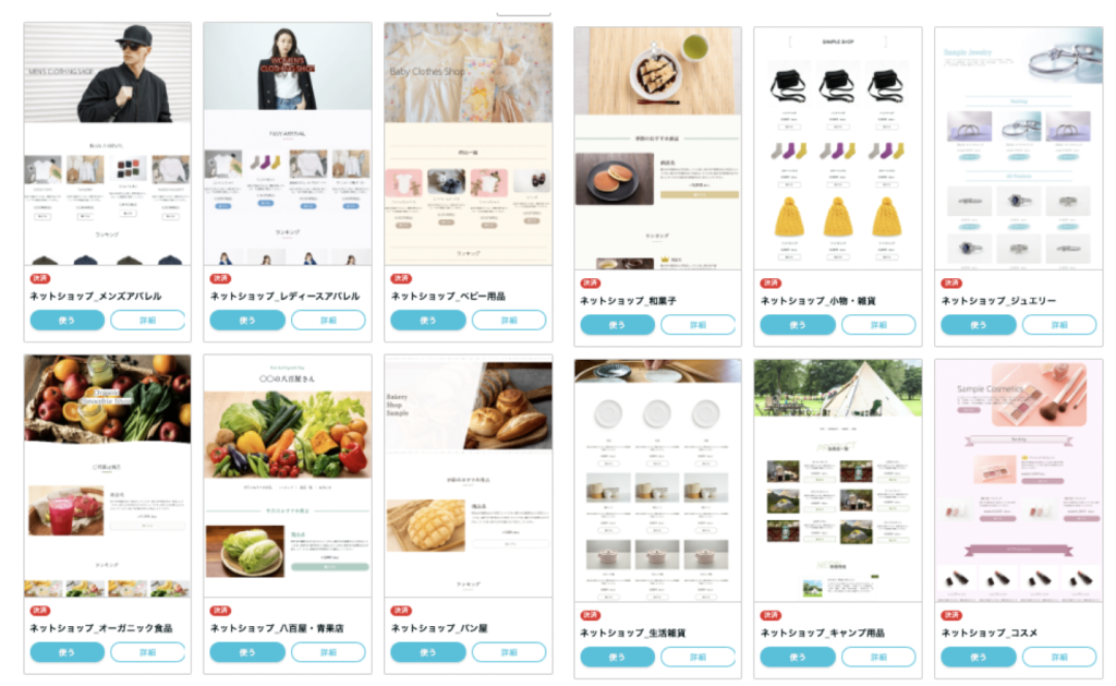 ▲ペライチで選択できるテンプレートの一例