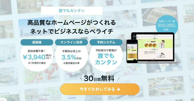 ペライチは無料で使えるホームページ作成サービスです。決済機能を使えば簡単にネットショップやセミナーページを作る事ができます。