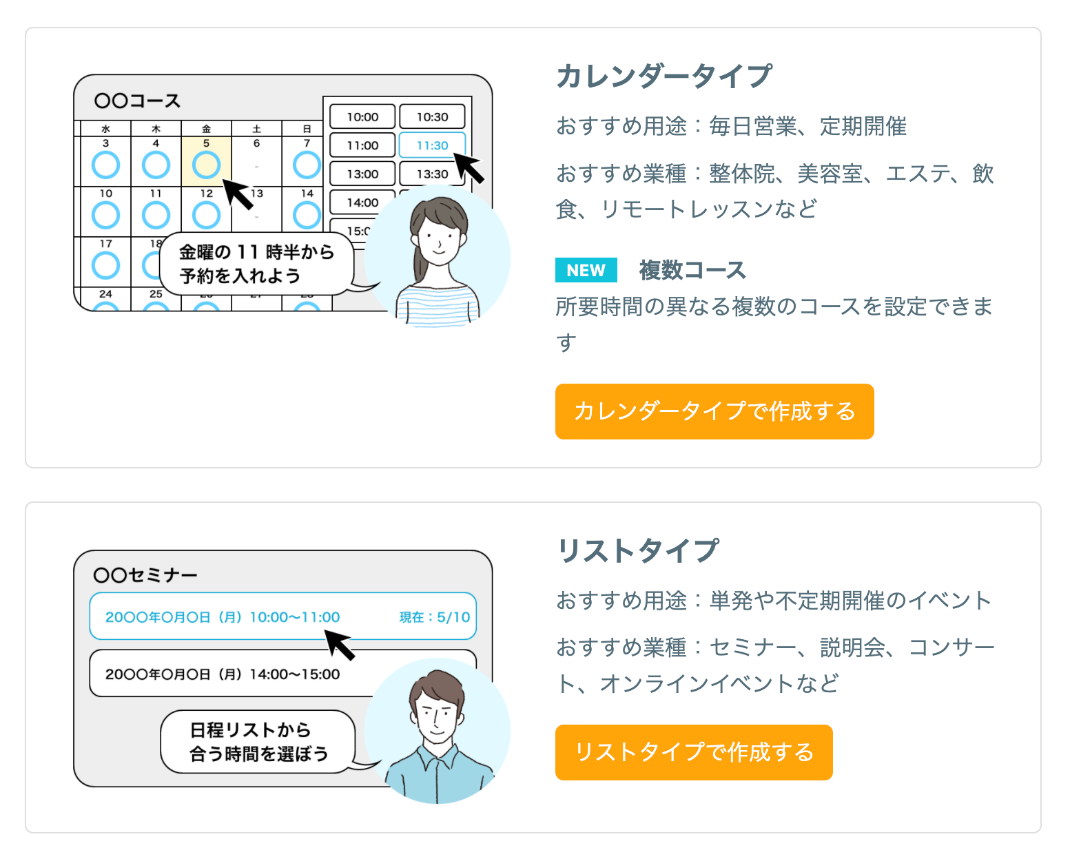 また、予約枠はビジネス形態に合わせて2種類から選ぶことができます。