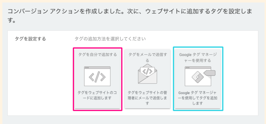 (ただし、Googleタグマネージャーを導入済みの方は「Googleタグマネージャーを使用する」を選択してください)