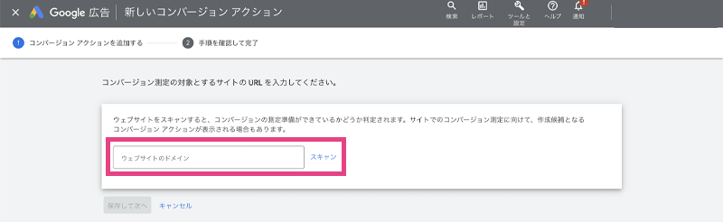 設定したいサイトのドメインを入力し、「スキャン」をクリック