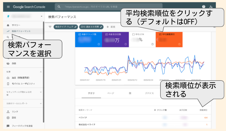 ①サーチコンソールの平均順位を確認する