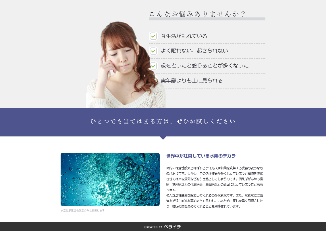 この部分は、「そうそう!」「わかる!」とユーザの共感を呼び、自分ごと化してもらうことが目的です。