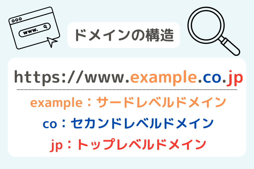 ここではドメインの基本構造や、独自ドメインとサブドメインの違いについて解説していきます。