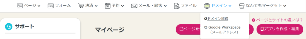 とくにノーコードでホームページ作成を目指している方には、時短でサイト、EC、LP作成などをしながらドメイン取得と管理までワンストップでできるのは 、非常に大きなメリットと言えるでしょう。