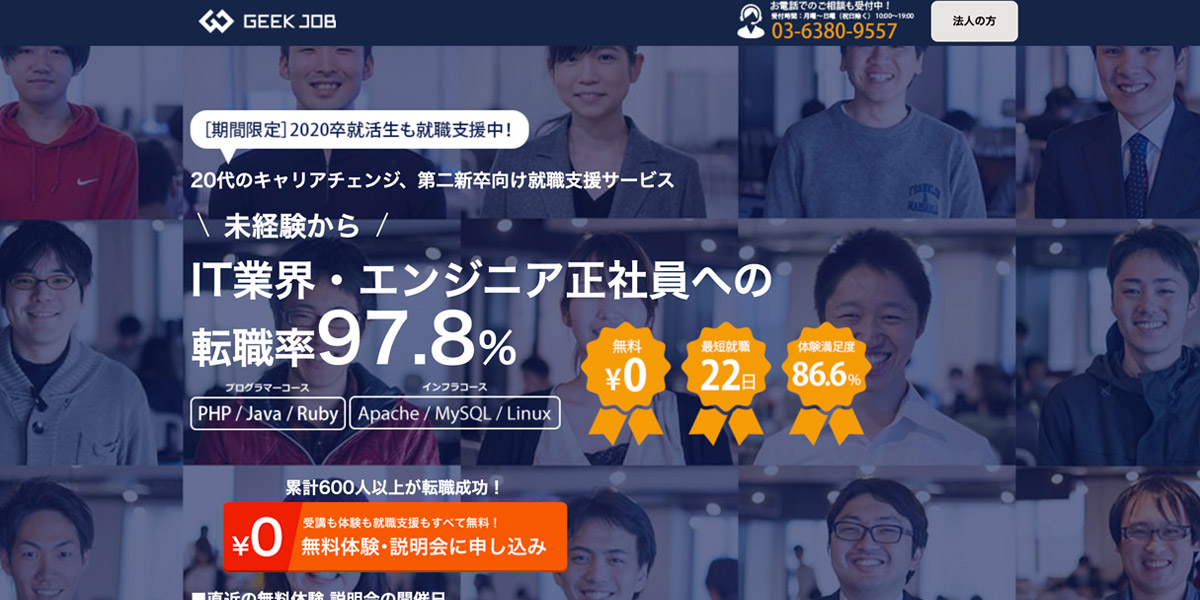GEEK JOBは20代のキャリアチェンジ、第二新卒向け就職支援サービスです。